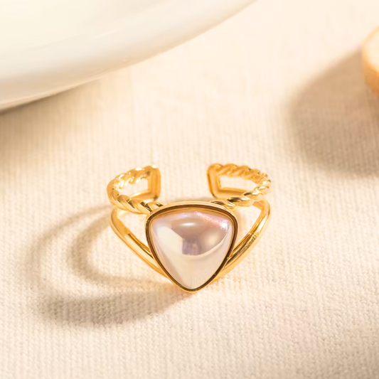Ethereal Pearl Prism Double Layer Thread Triangle Ring