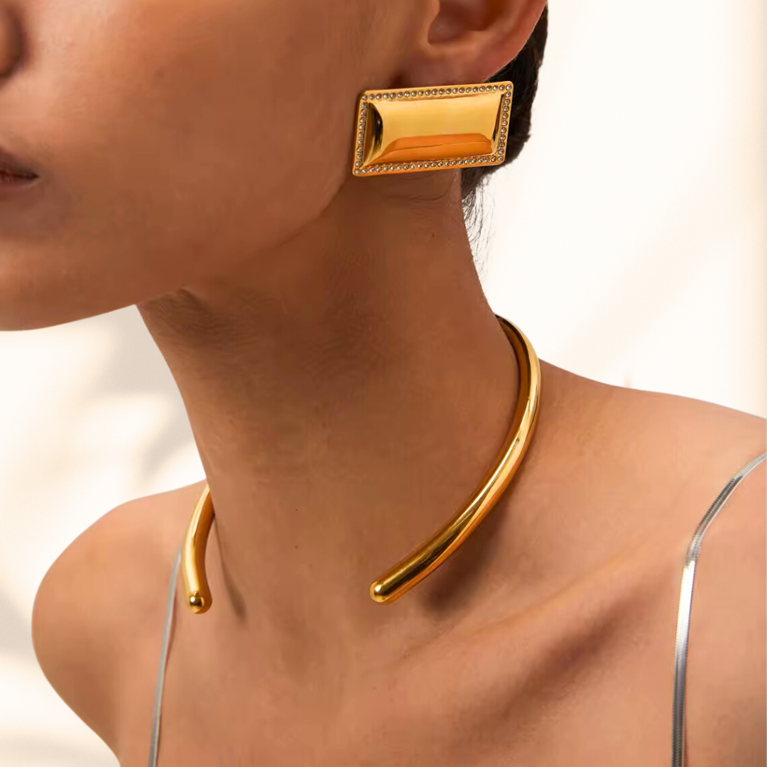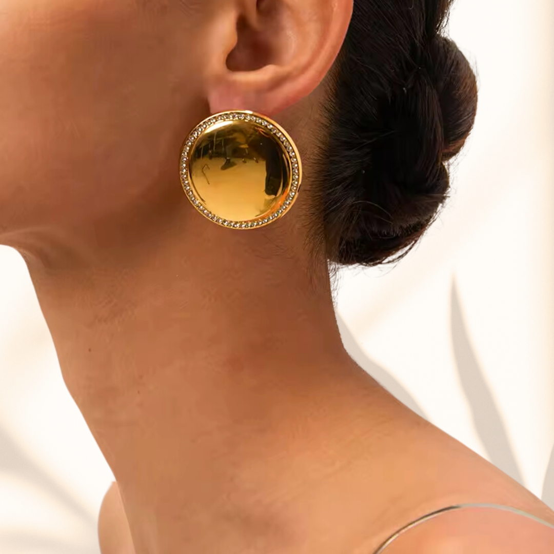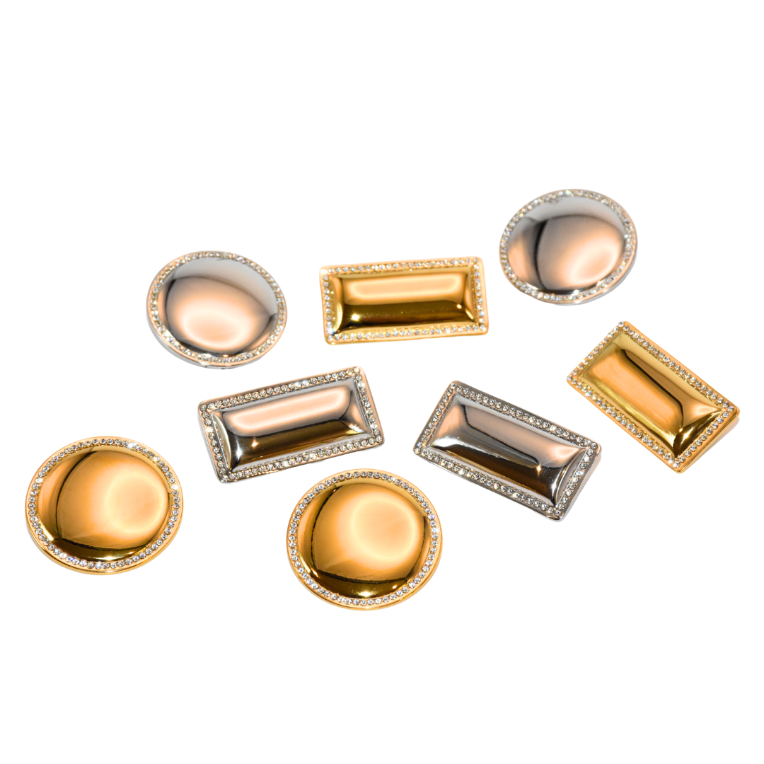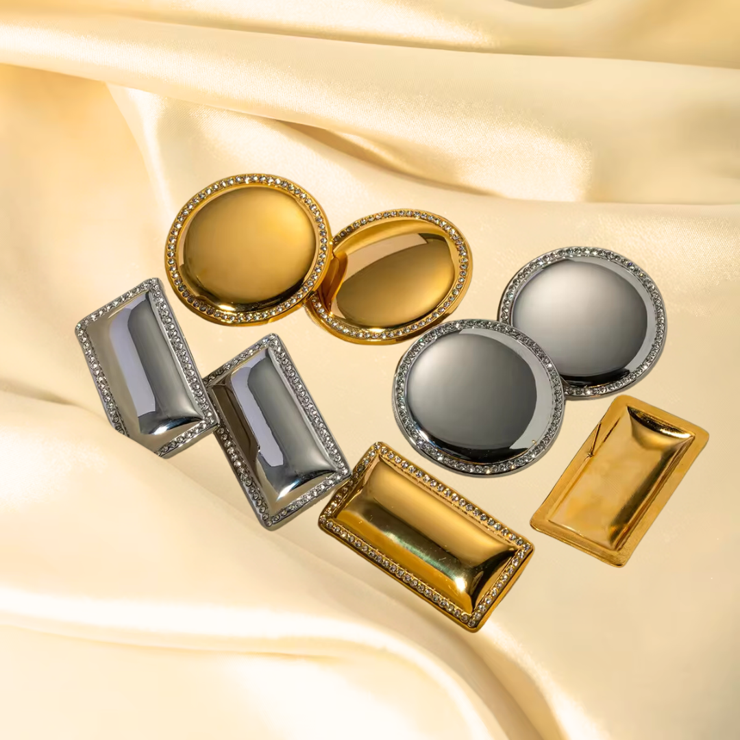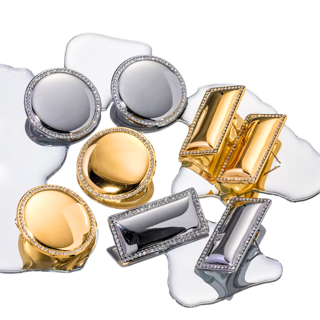 Embrace elegance with our Rhinestone Zircon Smooth Geometric Stud Earrings. Boasting a lustrous gold and silver finish, these statement studs feature dazzling rhinestones and zircon accents for a touch of sophistication. Crafted with nickel-free and hypoallergenic stainless steel, they ensure comfort and durability. Elevate your style with these timeless and sustainable earrings.