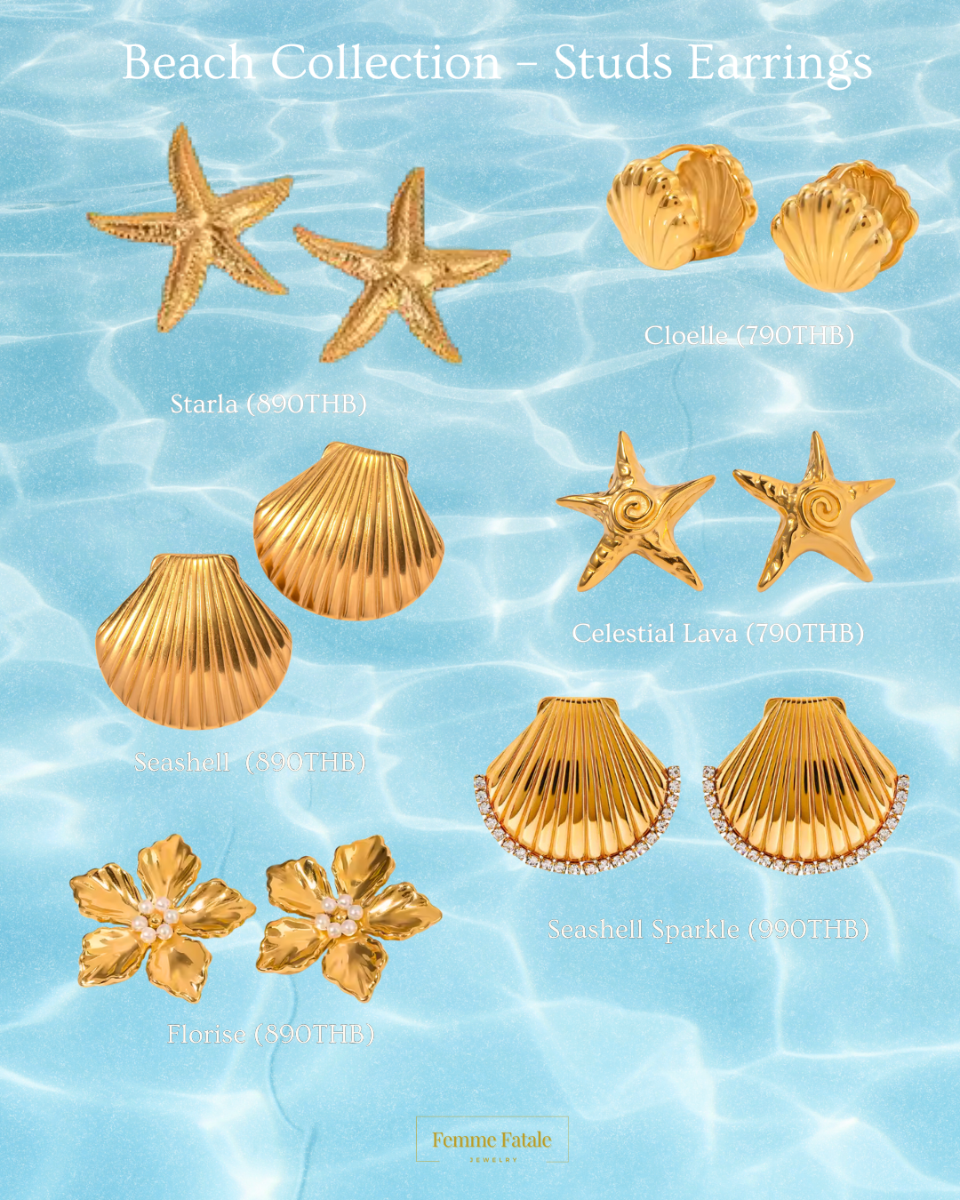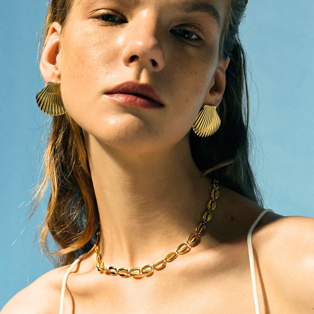 Small in size, bold in charm — the Studs Earrings from the Beach Collection bring effortless glam to your everyday look. Crafted in high-quality 18k gold plated stainless steel, each piece is tarnish-resistant, lightweight, and ocean-inspired. Perfect for stacking, mixing, or shining solo.