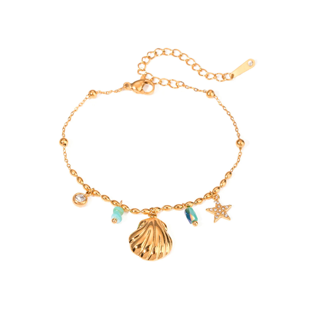 • Made from 18k gold plated stainless steel with natural-toned charms and zircon sparkle.