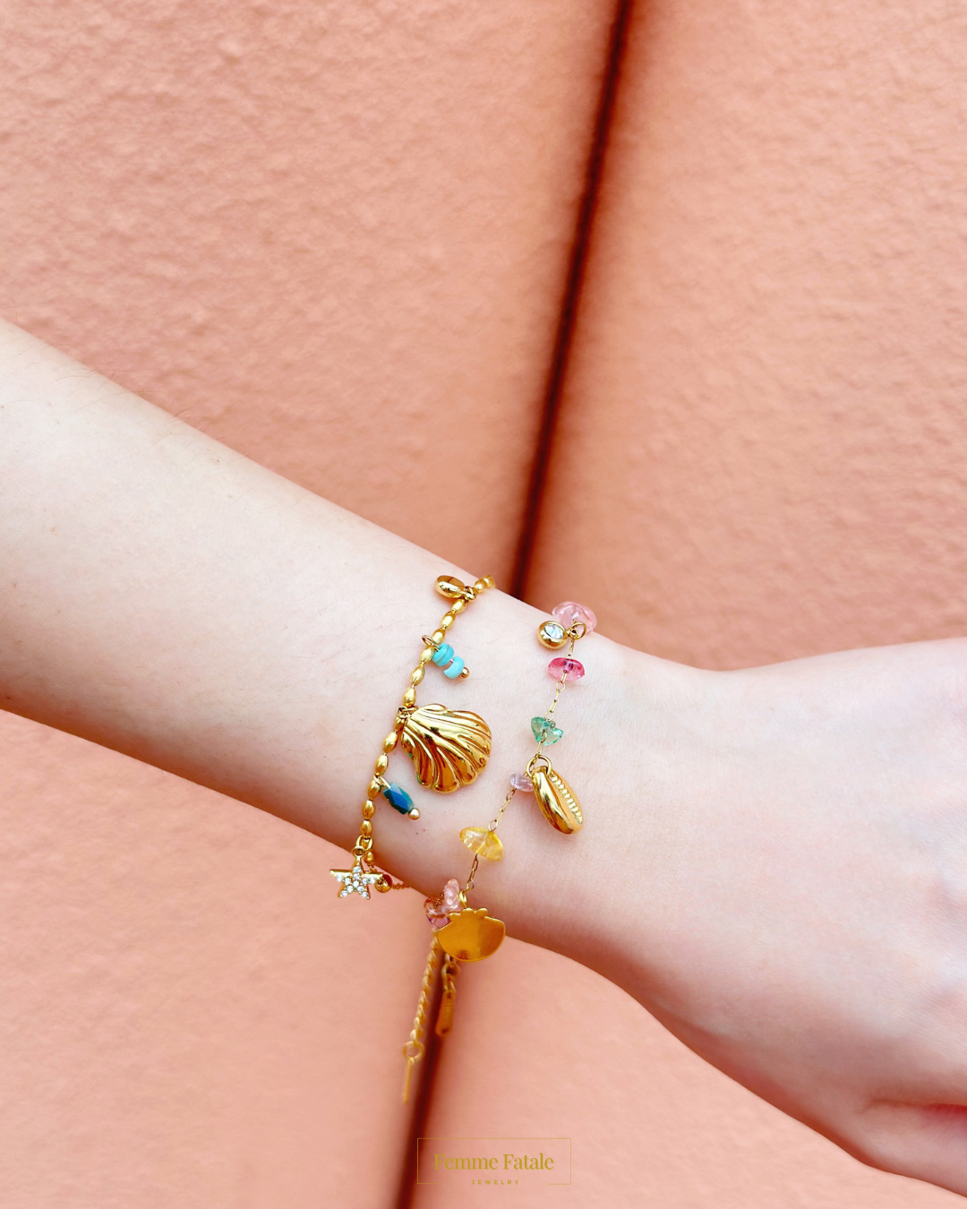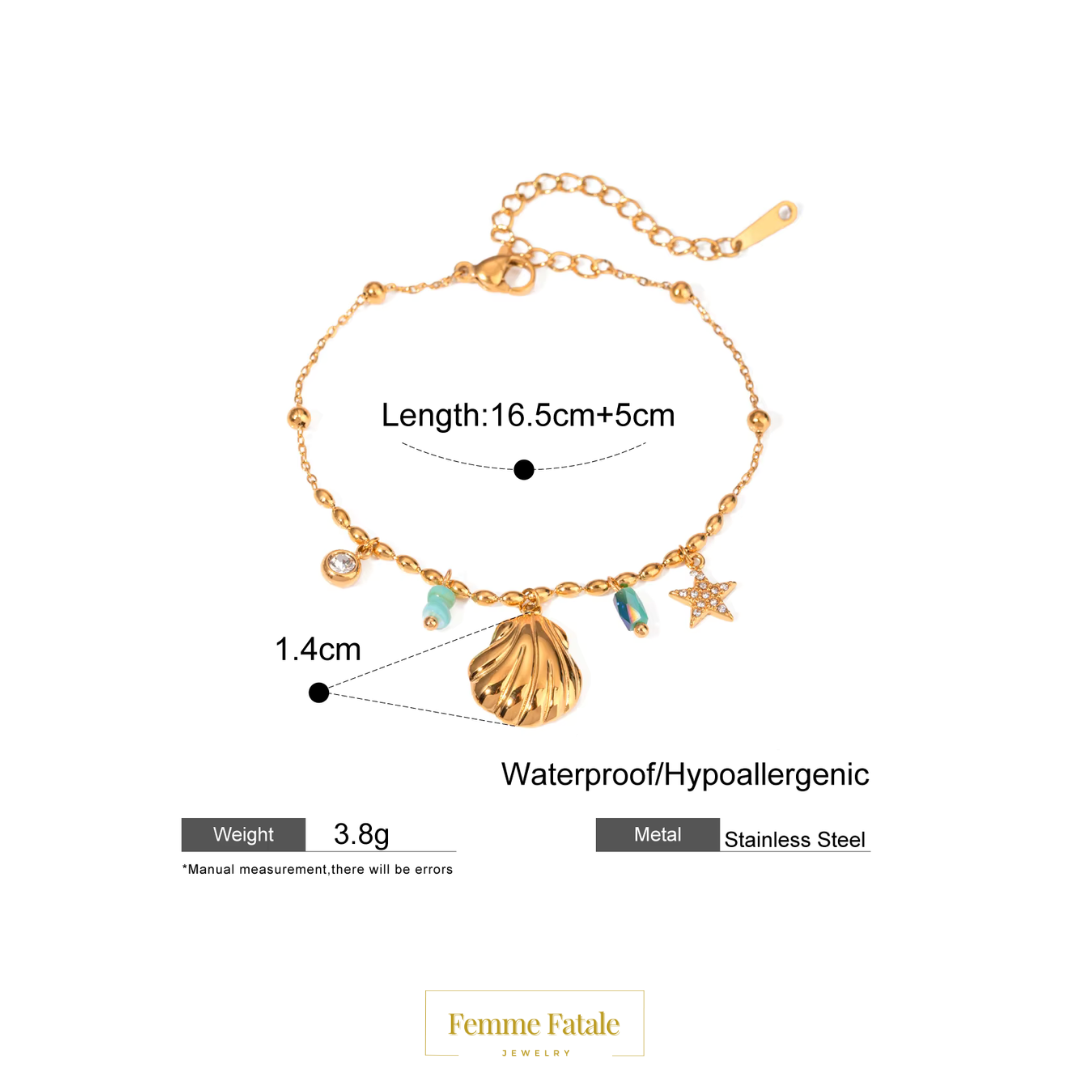 Colorful, carefree, and crafted for the modern muse. The Boho Beach Bracelets blend ocean-inspired charms with delicate stones and 18k gold plated accents. Each piece is adjustable, lightweight, and designed for stacking or shining solo — perfect for barefoot beach days, sundresses, or golden hour dates.