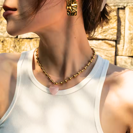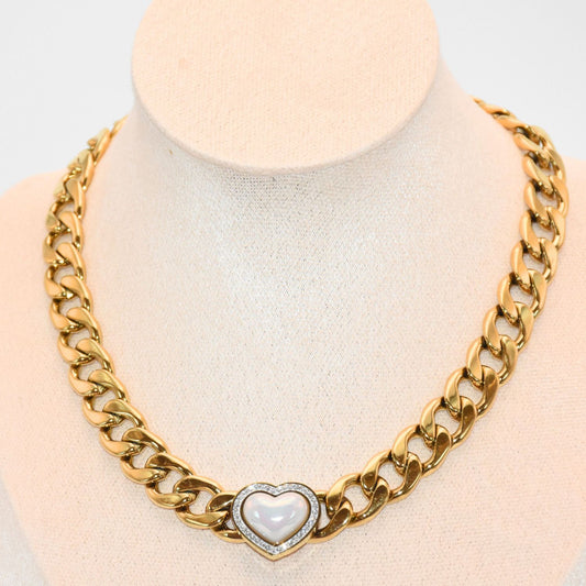 สร้อยคอโซ่คำสั่งเซอร์โคเนียหัวใจมุกทอง
